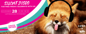 Help mee onze boodschap te verspreiden: kom vrijdag 28 november naar LUSH, dans mee én doneer voor een bontvrije wereld. Samen maken in stilte kabaal voor de dieren!