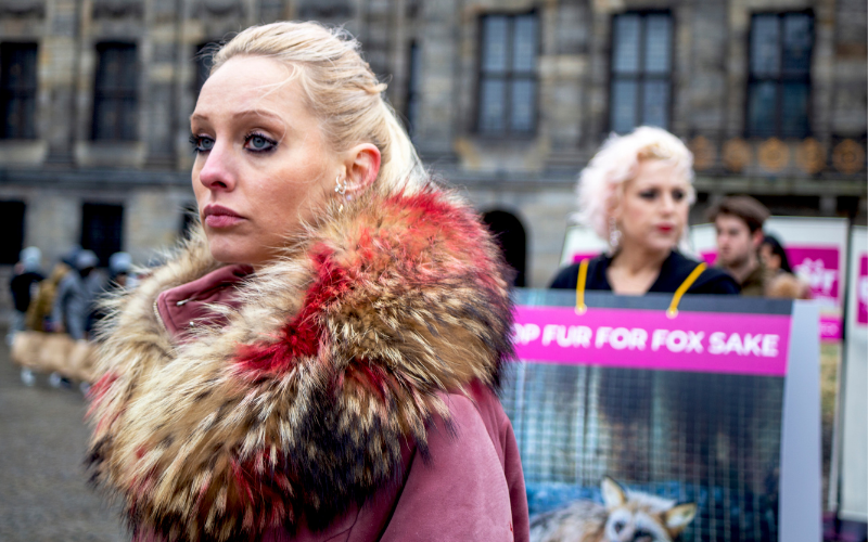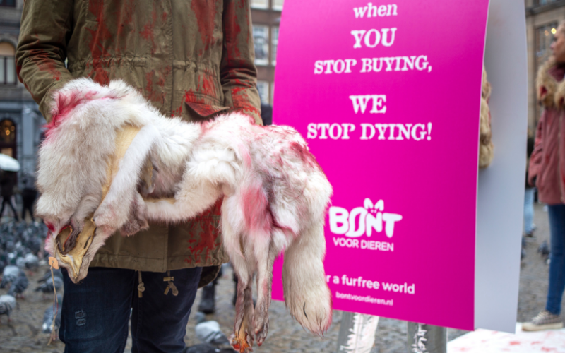 Elke winter vult het straatbeeld zich weer met jassen met bontkragen van wasbeerhonden, vossen en coyotes en mutsen met pompons van konijn. Sinds 2021 mogen dieren in Nederland niet meer worden gefokt voor hun vacht, maar bont mag hier nog wel worden geïmporteerd en verkocht. Ontzettend krom en voor ons de reden om zoveel mogelijk actie te voeren op straat.